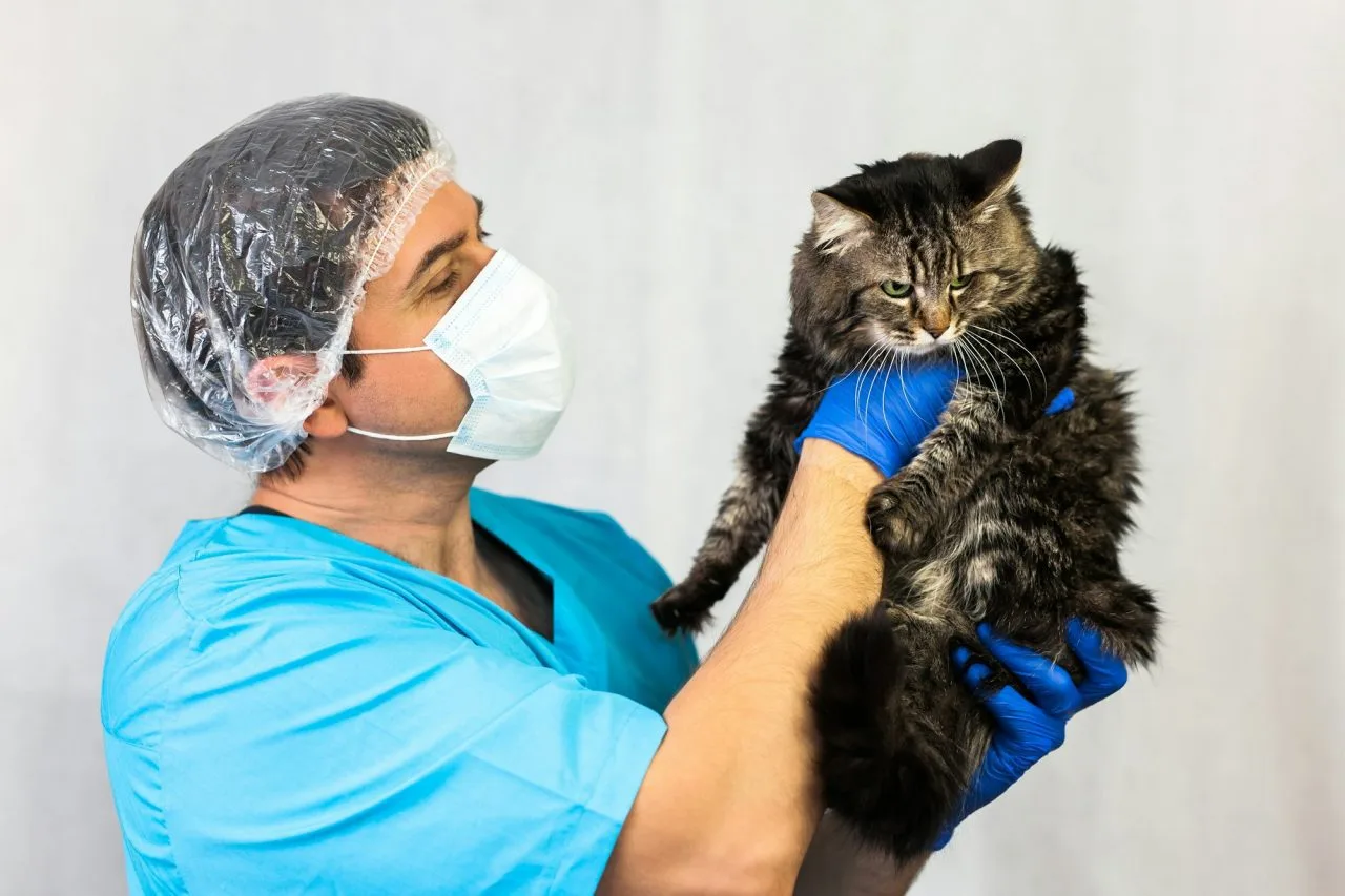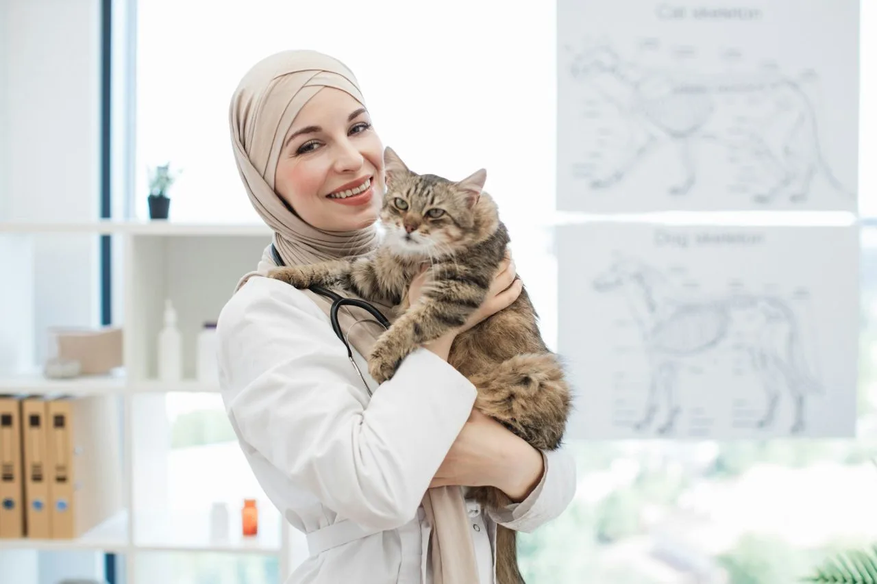 Woman Veterinarian Examining Cat On Table In Veterinary Clinic Medicine Treatment Of Pets